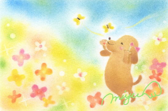 温かみのある色調のパステルをパウダー状にして指で描く素朴で透明感のある優しくて心地よいアートです。